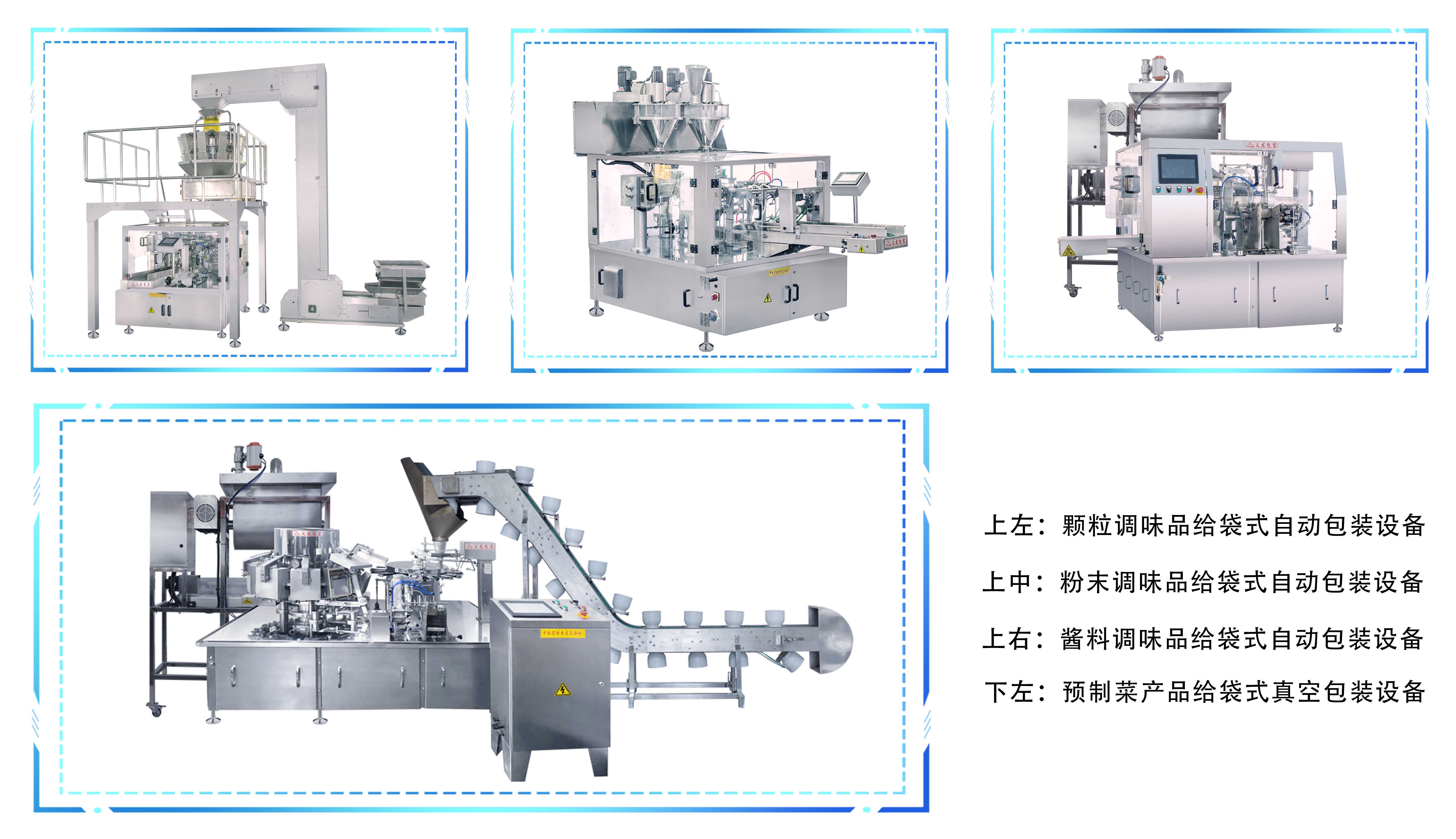 公司針對各類粉劑、顆粒、醬體(ti) 調味品研發的給袋式自動包裝設備,解決(jue) 了客戶在包裝過程中的粉塵反撲、拉絲(si) 滴料等痛點,大大節省了物料與(yu) 人工成本。更是提前預判市場情況,提前推出預製菜給袋式真空包裝機,針對即食、即熱、即烹、即配類預製菜製定不同的自動包裝解決(jue) 方案,極大的促進了預製菜產(chan) 業(ye) 的發展。