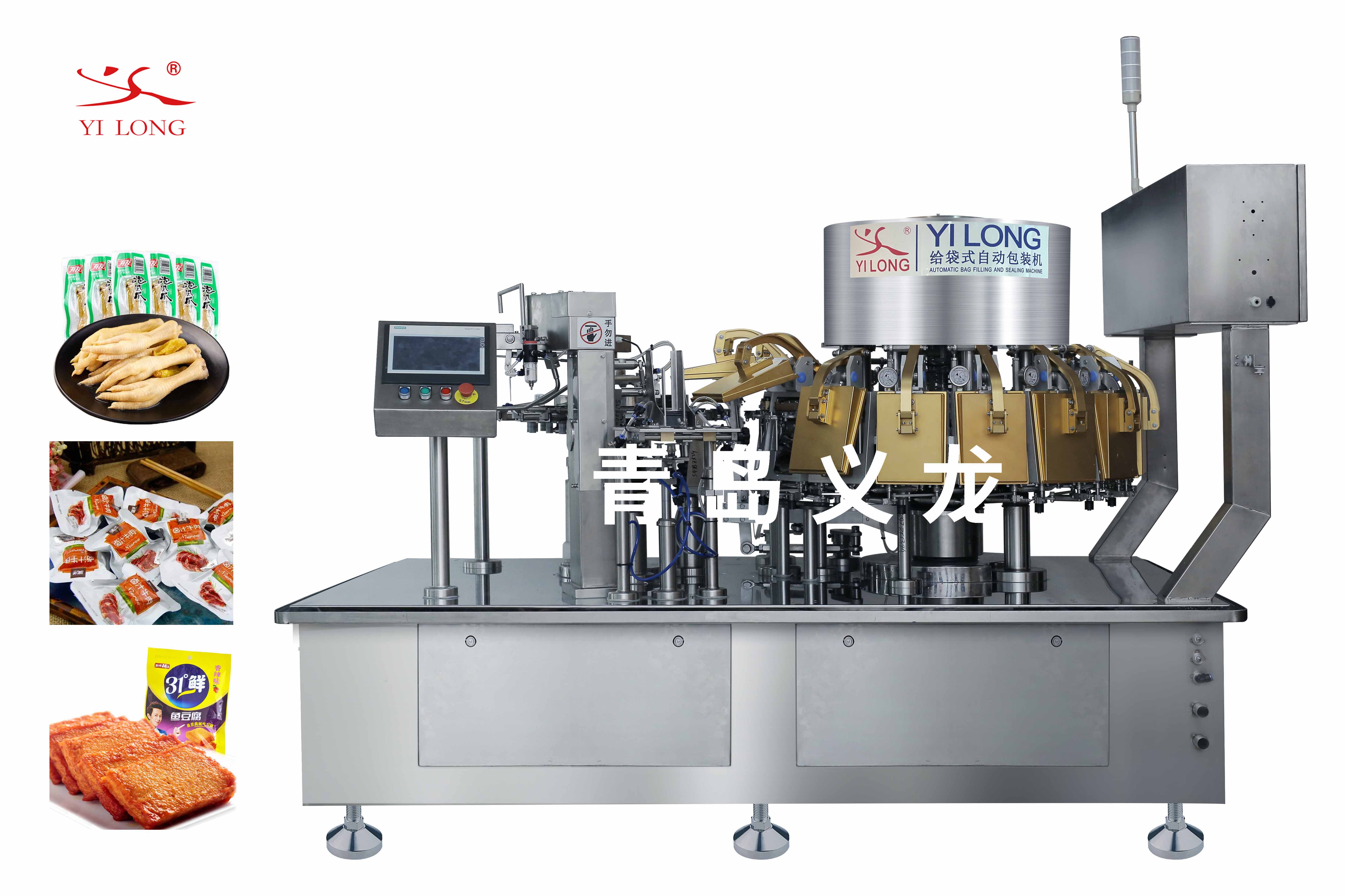 義(yi) 龍自動卷膜製袋給袋式包裝機是國內(nei) 行業(ye) 首創產(chan) 品,設備可自動卷膜製平麵袋、自立袋、拉鏈袋,設計獨立機械爪抓袋,可一鍵調節袋尺寸,實現一機多用,包裝速度達100-200袋/分鍾,打破行業(ye) 卷膜水平機無機械爪、無法調節袋尺寸規格的痛點。可廣泛應用於(yu) 粉劑、顆粒等產(chan) 品的自動製袋包裝。
