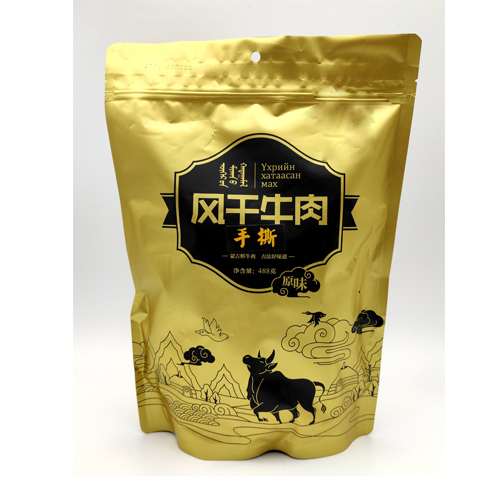 3.鋁箔複合膜包裝:這是風幹牛肉包裝中最為(wei) 常見的一種材質。它由鋁箔、塑料和紙三層材料複合而成,具備出色的阻隔性能,能夠有效隔絕氧氣和水分,防止牛肉幹氧化變質和受潮。