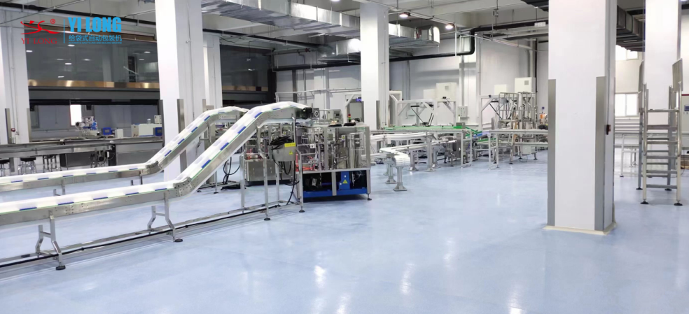 義(yi) 龍小袋自動入外袋給袋式包裝機配套裝箱生產(chan) 現場