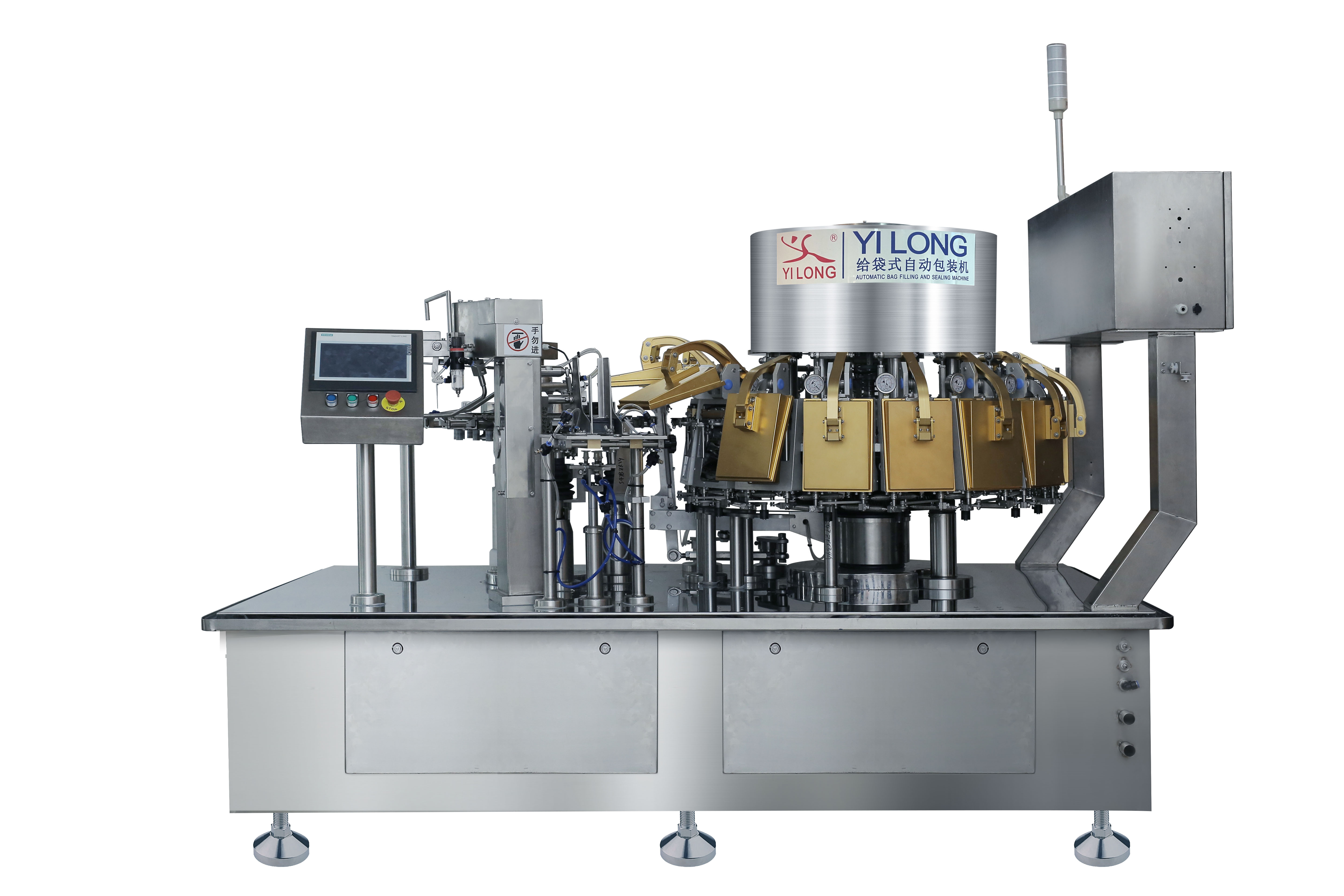 ●采用世界穩定的凸輪機械傳(chuan) 動技術,使設備運行更加快速穩定;故障率、耗能低、耐用耐磨性強。 ●機械維護、檢修方便:設備主要部分采用機械傳(chuan) 動,多數采用含油軸承,減少了注油的部位,維護簡單。 ●安裝方便、操作簡單。采用PLC觸摸屏操作界麵,全過程都實現自動化控製。主機調速采用變頻調速器調速。 ●本機特別設計了整形工位,使封口平整無折皺,故包裝袋圖案完整、封口質量好、破包率極低,可降低包裝袋損耗。