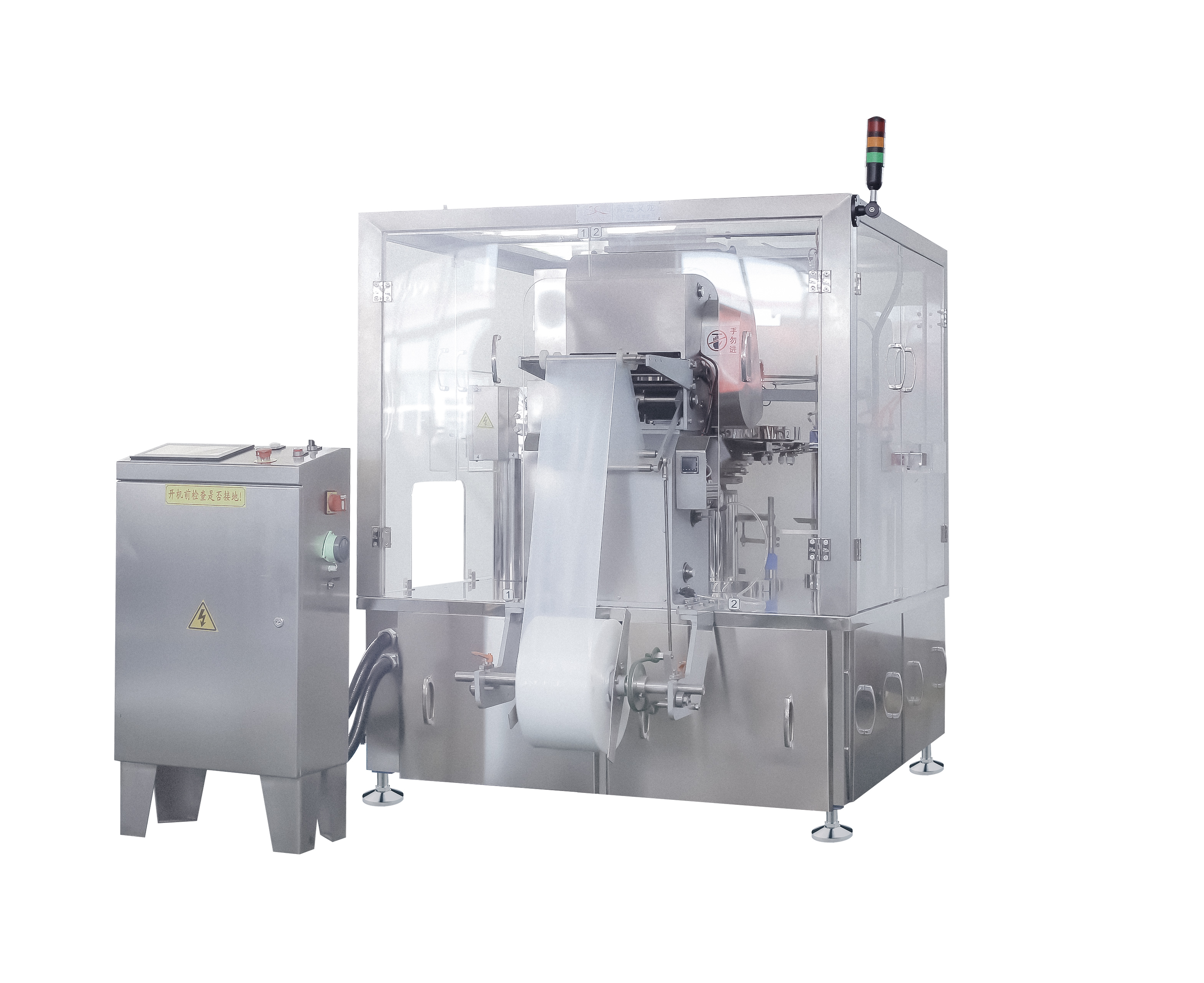 ●采用世界穩定的凸輪機械傳(chuan) 動技術,使設備運行更加快速穩定;故障率、耗能低、耐用耐磨性強。 ●機械維護、檢修方便:設備主要部分采用機械傳(chuan) 動,多數采用含油軸承,減少了注油的部位,維護簡單。 ●安裝方便、操作簡單。采用PLC觸摸屏操作界麵,全過程都實現自動化控製。主機調速采用變頻調速器調速。 ●本機特別設計了整形工位,使封口平整無折皺,故包裝袋圖案完整、封口質量好、破包率極低,可降低包裝袋損耗。