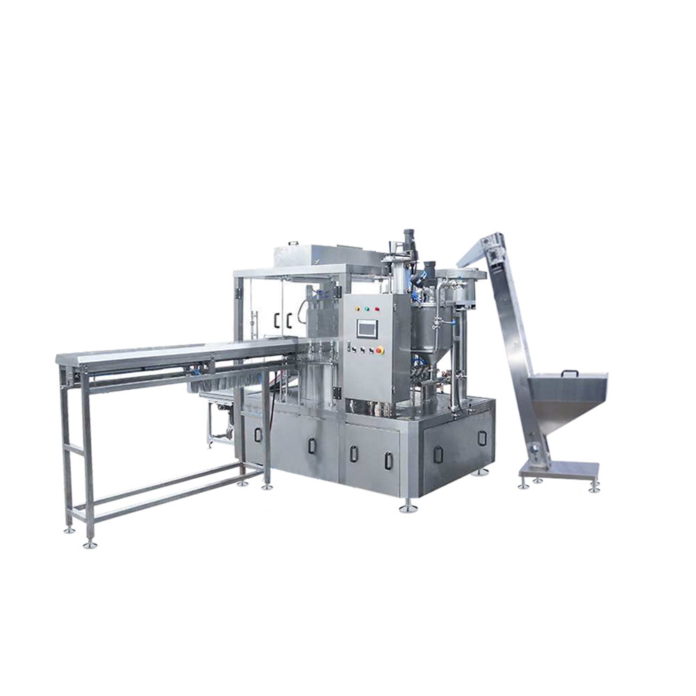 YL-(6-8)XZ間歇回轉式吸嘴袋灌裝旋蓋機灌裝頭數6-8,針對各種吸嘴袋進行包裝,機體(ti) 采用先進噴塑工藝或采用全不鏽鋼材料,與(yu) 物料接觸部件選用進口不鏽鋼材料或其他潔淨材料,衛生標準高、抗腐蝕、設備使用壽命長。可與(yu) 自動計量機、各種提升機等設備配套,客戶可依據產(chan) 品包裝需求增設開門急停、自動投卡、異常排出等細節功能,包裝全過程無需人工操作,有效的為(wei) 貴公司提高了生產(chan) 效率,節約了人工費用及管理費用,大幅降低了成本。